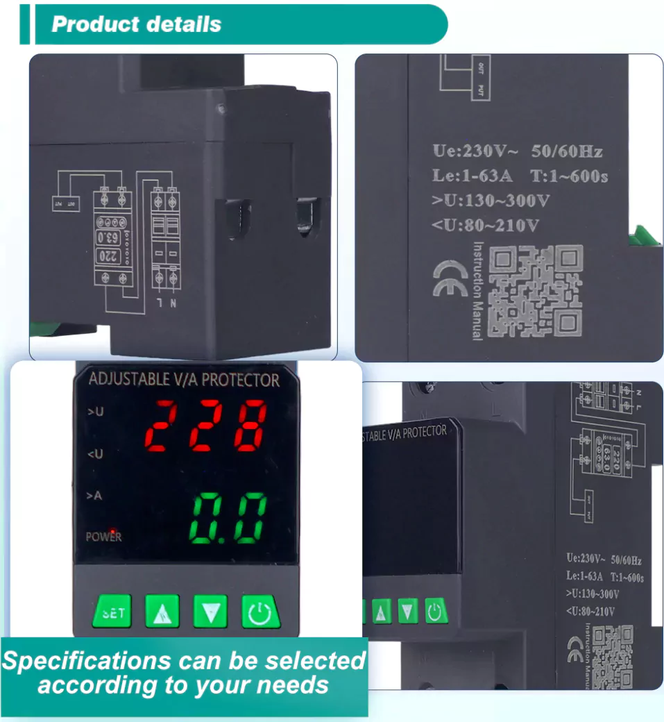 একটি ডিজিটাল ডিসপ্লে দিয়ে সজ্জিত এবং আমদানিকৃত মডুলার বৈদ্যুতিন উপাদানগুলির সাথে উত্পাদিত, এটির উচ্চ নির্ভরযোগ্যতা এবং কর্মক্ষমতা রয়েছে। প্রটেক্টর স্বয়ংক্রিয়ভাবে এবং দ্রুত অস্বাভাবিক ভোল্টেজের সময় বিদ্যুৎ সরবরাহ বন্ধ করে দেয় (যেমন ওভারভোল্টেজ, আন্ডারভোল্টেজ বা গ্রিডের ওঠানামা) এবং ভোল্টেজ স্বাভাবিকের পরে বিদ্যুৎ সরবরাহ পুনরুদ্ধার করে।