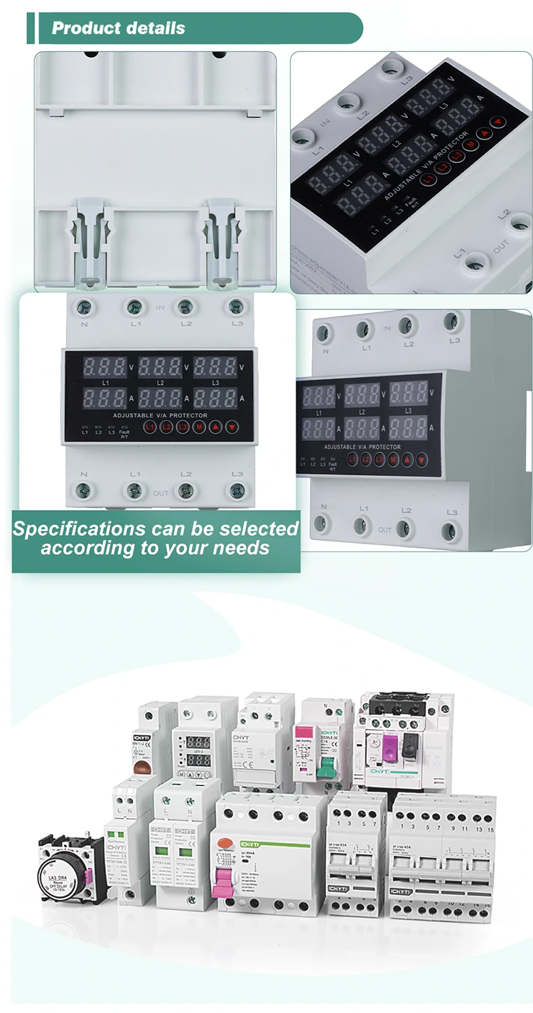 এগুলি একটি ডিজিটাল ডিসপ্লে সহ আসে এবং আমদানি করা মডুলার ইলেকট্রনিক উপাদান ব্যবহার করে তৈরি করা হয়, এইভাবে উচ্চ নির্ভরযোগ্যতা এবং কর্মক্ষমতা প্রদান করে। ওভারভোল্টেজ, আন্ডারভোল্টেজ বা গ্রিডের ওঠানামার মতো অস্বাভাবিক ভোল্টেজের ক্ষেত্রে, প্রটেক্টররা স্বয়ংক্রিয়ভাবে এবং দ্রুত পাওয়ার বন্ধ করে দিতে পারে এবং তারপর ভোল্টেজ স্বাভাবিক অবস্থায় ফিরে আসার পরে এটি পুনরুদ্ধার করতে পারে।