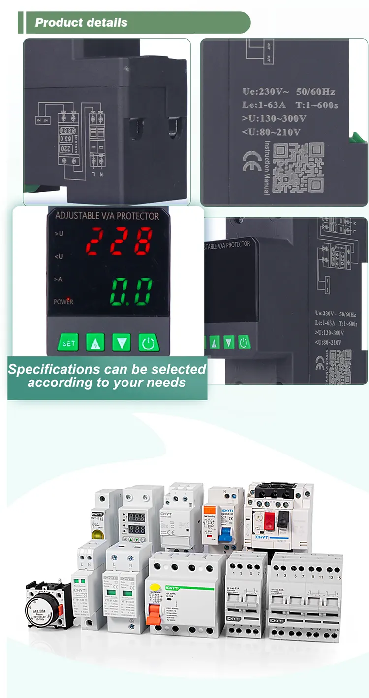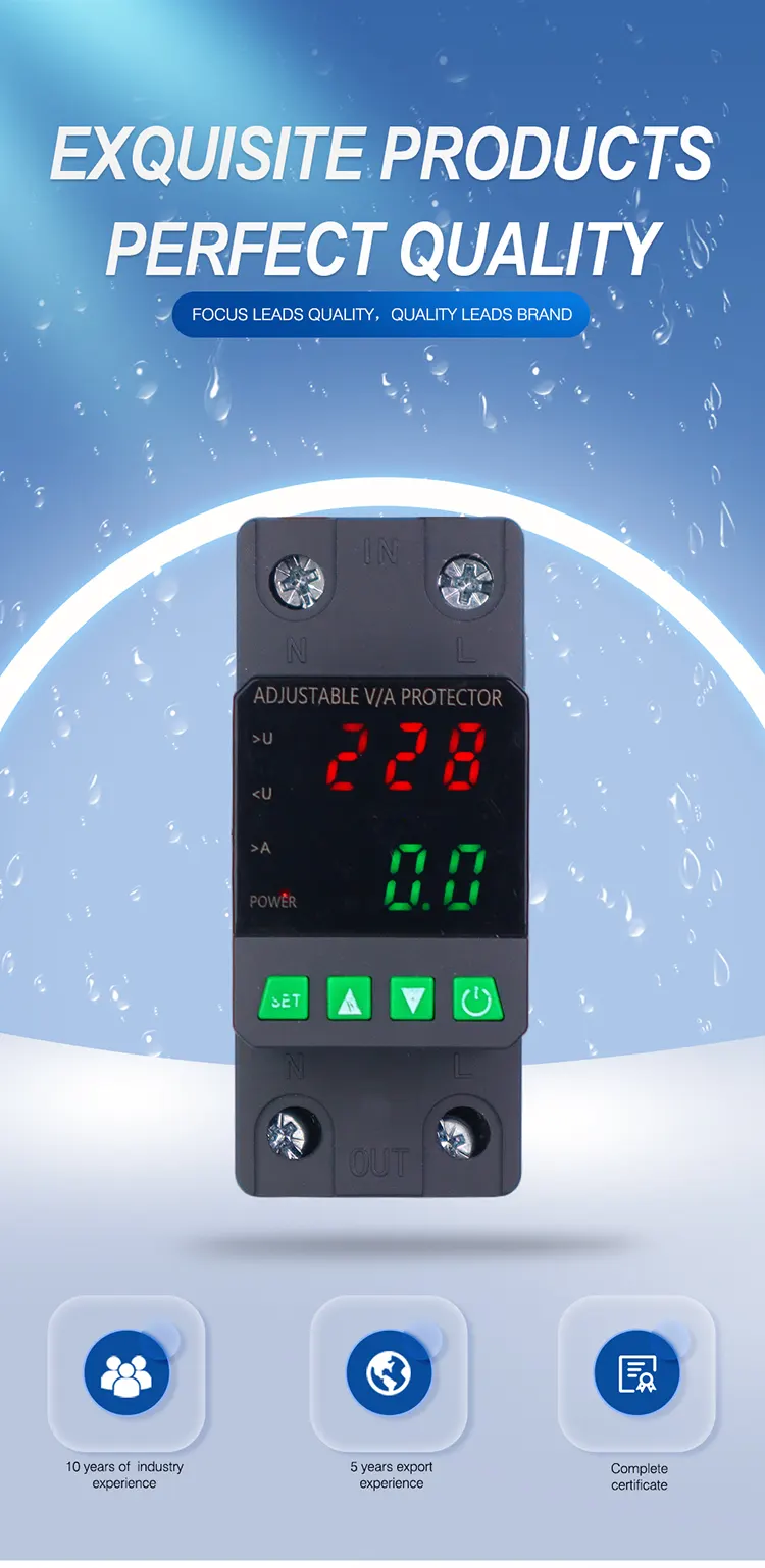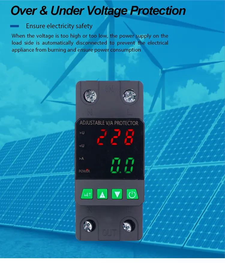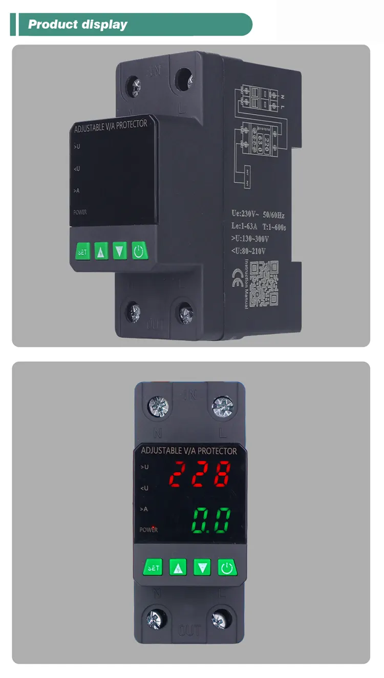 একটি ডিজিটাল ডিসপ্লে দিয়ে সজ্জিত এবং আমদানিকৃত মডুলার বৈদ্যুতিন উপাদানগুলির সাথে উত্পাদিত, এটির উচ্চ নির্ভরযোগ্যতা এবং কর্মক্ষমতা রয়েছে। প্রটেক্টর স্বয়ংক্রিয়ভাবে এবং দ্রুত অস্বাভাবিক ভোল্টেজের সময় বিদ্যুৎ সরবরাহ বন্ধ করে দেয় (যেমন ওভারভোল্টেজ, আন্ডারভোল্টেজ বা গ্রিডের ওঠানামা) এবং ভোল্টেজ স্বাভাবিকের পরে বিদ্যুৎ সরবরাহ পুনরুদ্ধার করে।