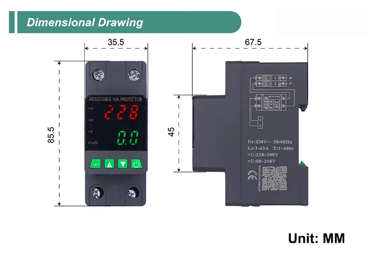 ৪. দ্বৈত ডিসপ্লে ভোল্টেজ প্রটেক্টর এর উপস্থিতি এবং কার্যকারিতা বাড়িয়ে সহজ ট্র্যাক ইনস্টলেশন জন্য একটি মডুলার ডিজাইন বৈশিষ্ট্যযুক্ত।