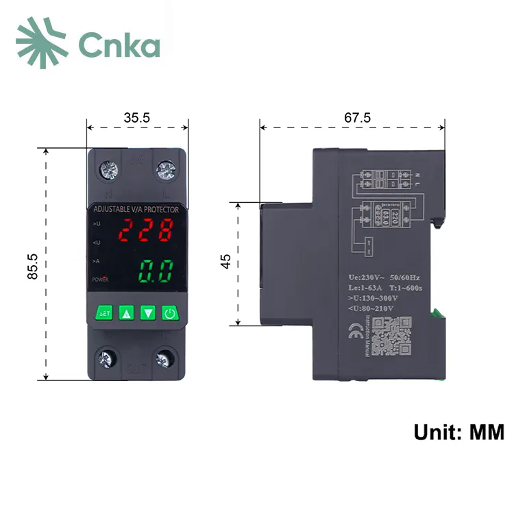 সিএনকেএ হ'ল একটি সুপরিচিত চীনা সরবরাহকারী যা তার ব্র্যান্ডের দ্বৈত ডিসপ্লে ভোল্টেজ প্রটেক্টরের পাইকারি সরবরাহ করে। এই ডিভাইসগুলি বিশেষত একক-ফেজ এসি 220 ভি, 50Hz সার্কিটের জন্য 63 এ এর রেটযুক্ত কারেন্ট সহ ডিজাইন করা হয়েছে, যা তাদের আবাসিক বিতরণ বাক্সগুলি বা তারের একক-পর্বের সরঞ্জামগুলিতে শক্তি সরবরাহ করার জন্য একটি আদর্শ পছন্দ করে তোলে।